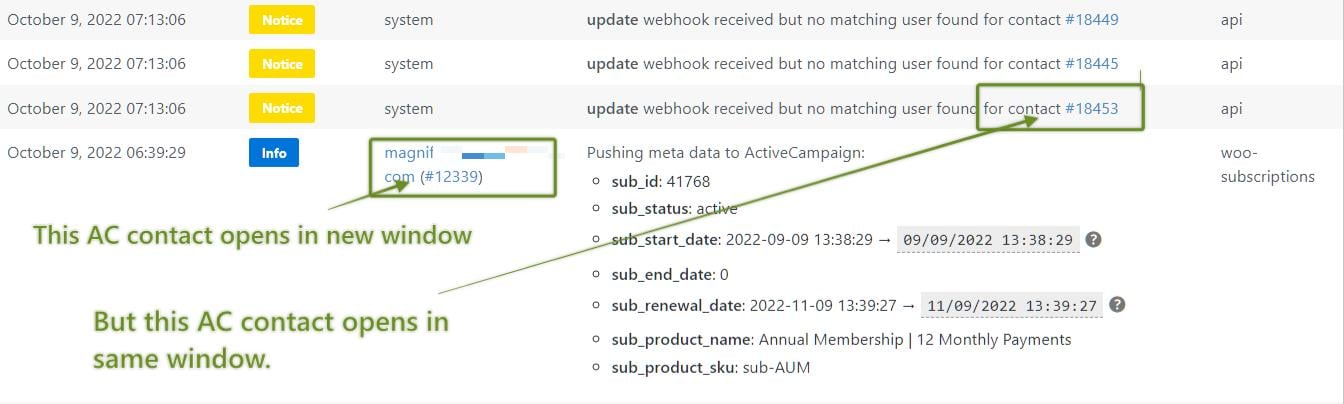 Nothing urgent, but when viewing the WPF logs, sometimes clicking a contact ID will open it in a new window, and sometimes it will open in the same window.